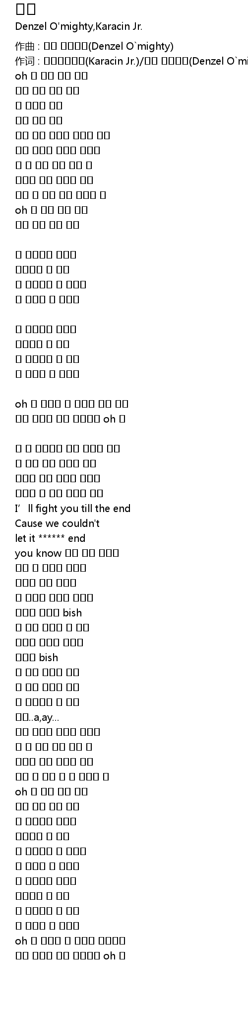 作词 : 카라신주니어(Karacin Jr.)/덴젤 오마이티(Denzel O`mighty) |