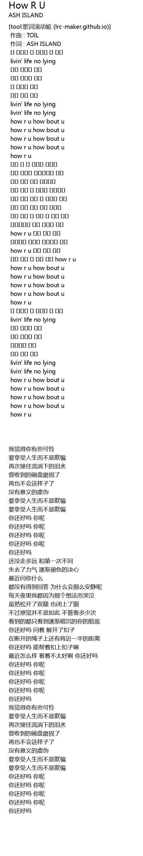 | [00:01.000] | zuò cí : ASH ISLAND |