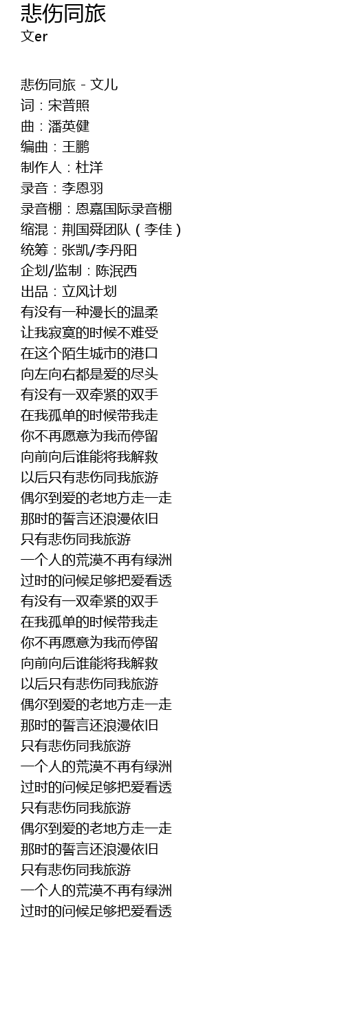 | zhǐ yǒu bēi shāng tóng wǒ lǚ yóu | |