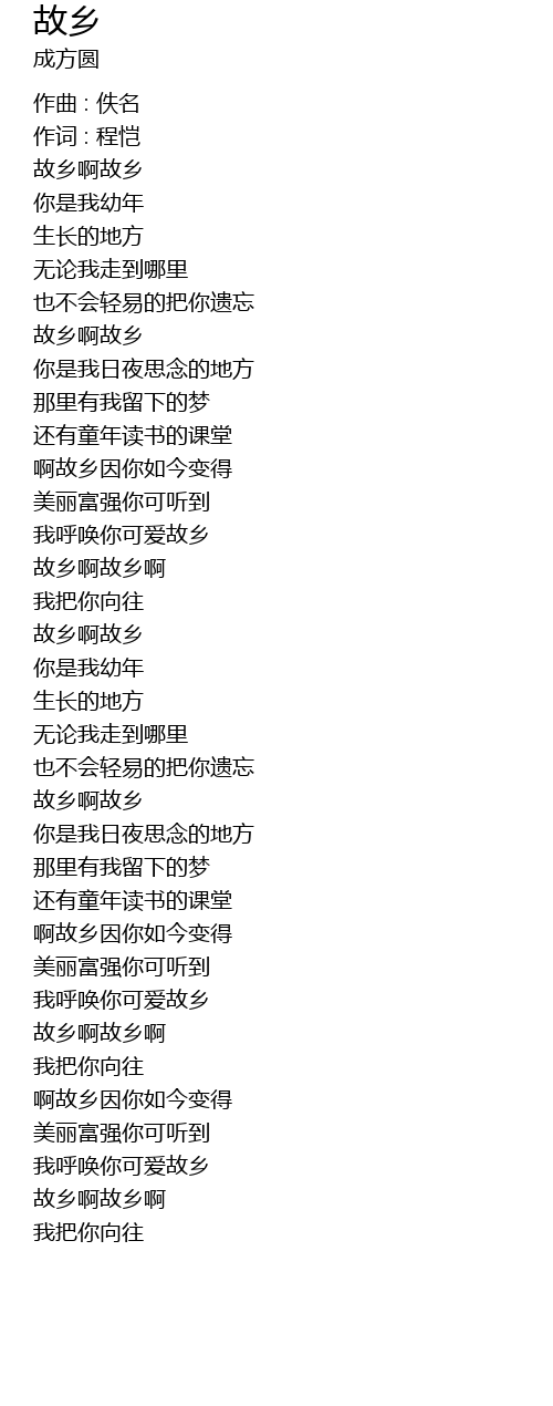 | wǒ hū huàn nǐ kě ài gù xiāng | |