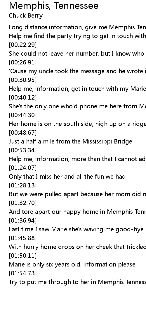 She's the only one who'd phone me here from Memphis Tennessee |