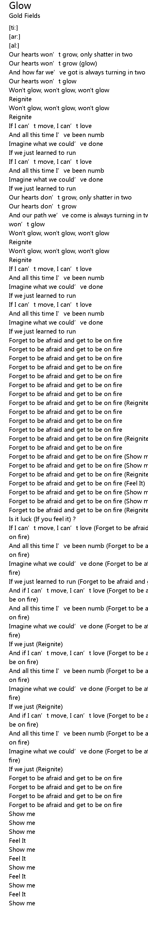| [03:47.69] | Forget to be afraid and get to be on fire |