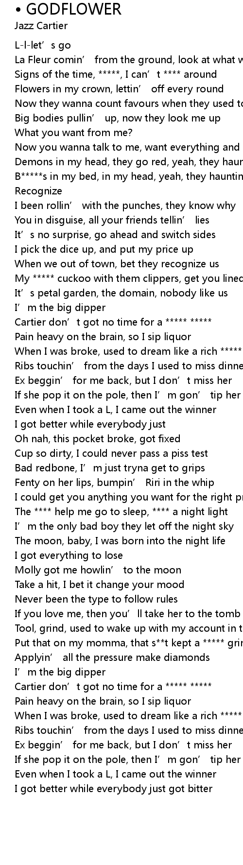 | [00:34.94] | B*****s in my bed, in my head, yeah, they hauntin’ me, I know |