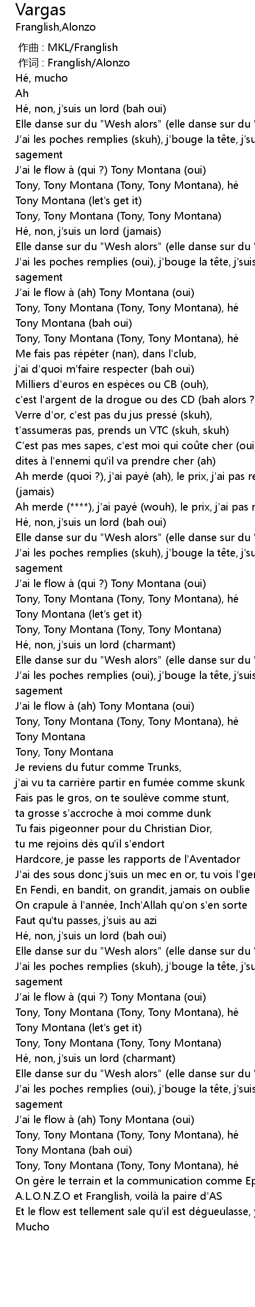 | [02:30.50] | J'ai le flow à (qui ?) Tony Montana (oui) |