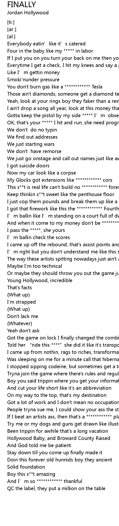 | [01:02.472] | Keep thinkin s**t sweet like the penthouse floor |