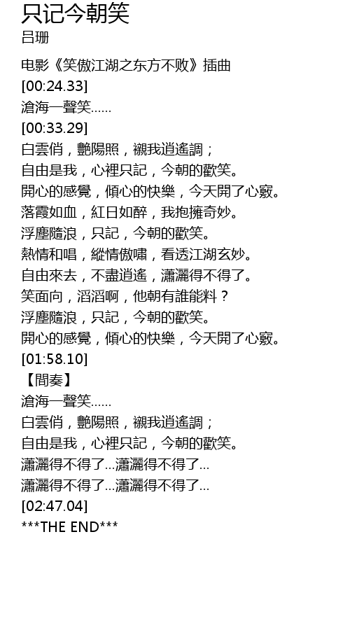 | [00:14.75] | 电影《笑傲江湖之东方不败》插曲 |