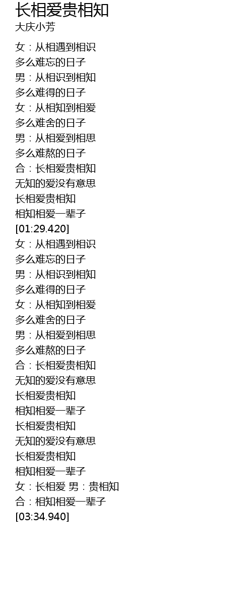 | [03:18.460] | 女:长相爱 男:贵相知 |
