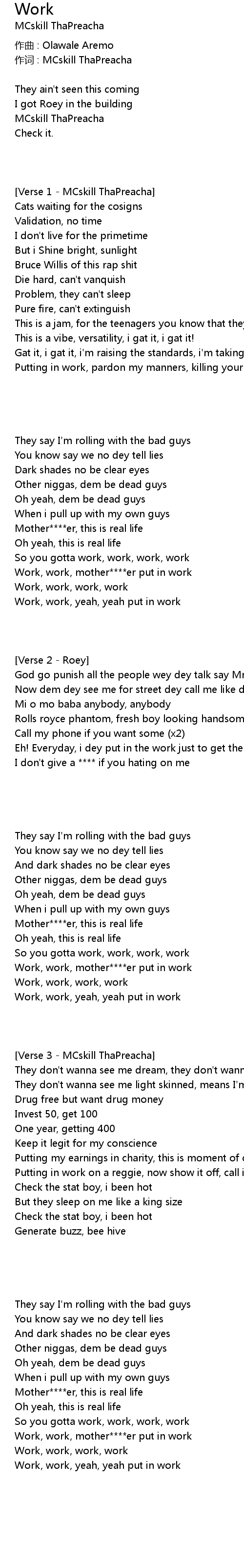 | Work, work, mother****er put in work | |