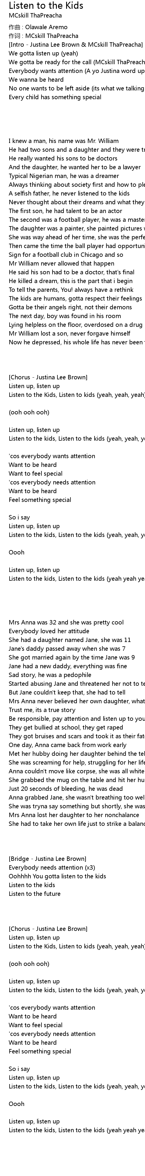 | Listen to the Kids, Listen to kids (yeah, yeah, yeah) | |