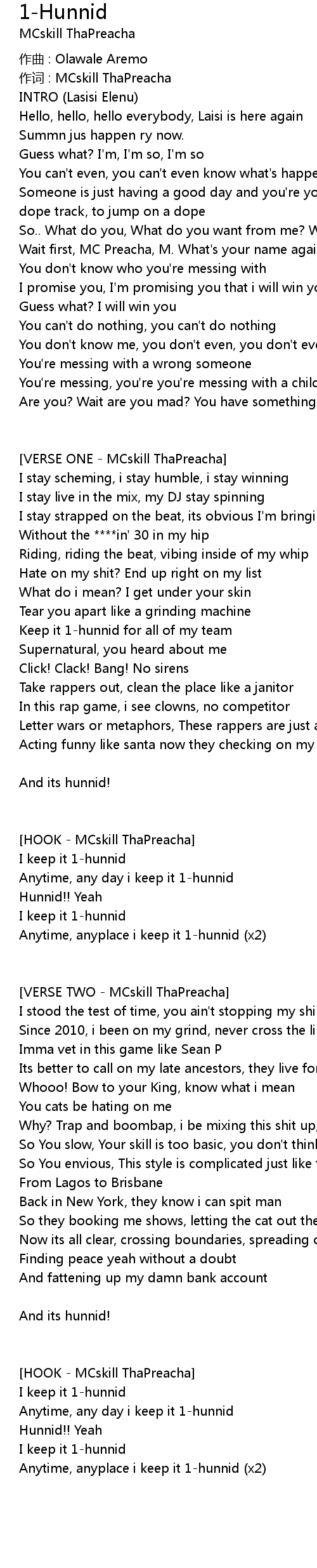 | Anytime, anyplace i keep it 1-hunnid (x2) | |