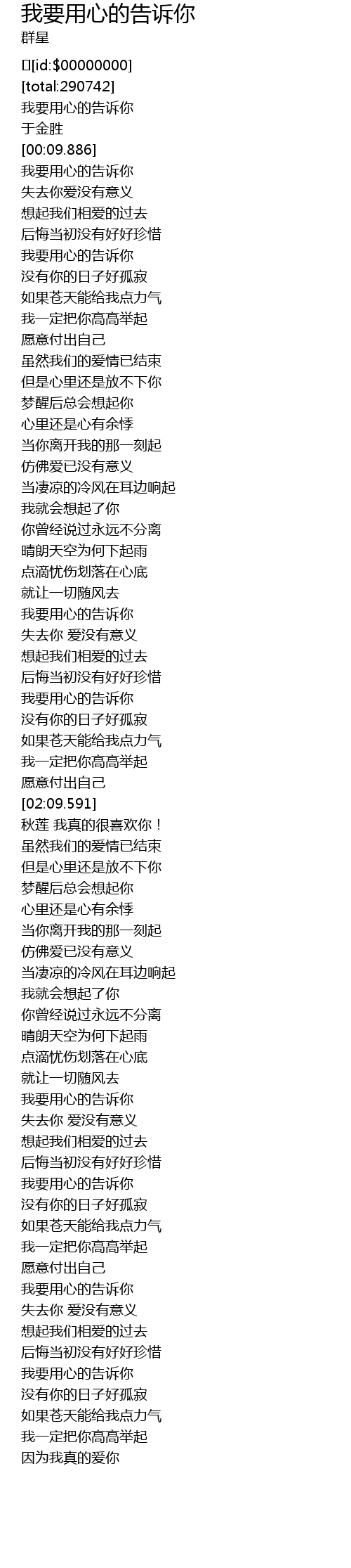 | [00:02.552] | wǒ yào yòng xīn de gào sù nǐ |