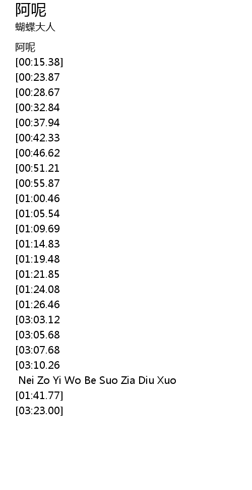 | [03:14.86][03:05.68][01:30.98] | 阿呢 Z Ba ai jo |
