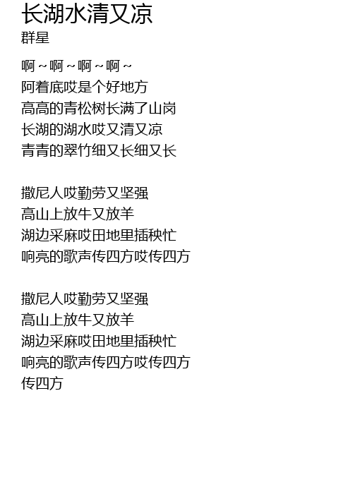 | zhǎng hú de hú shuǐ āi yòu qīng yòu liáng | |
