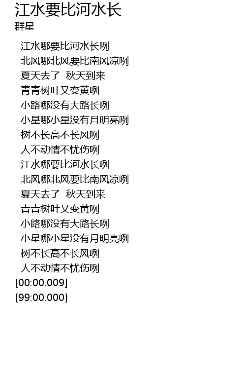 | [00:21.89] | jiāng shuǐ nǎ yào bǐ hé shuǐ zhǎng liě |