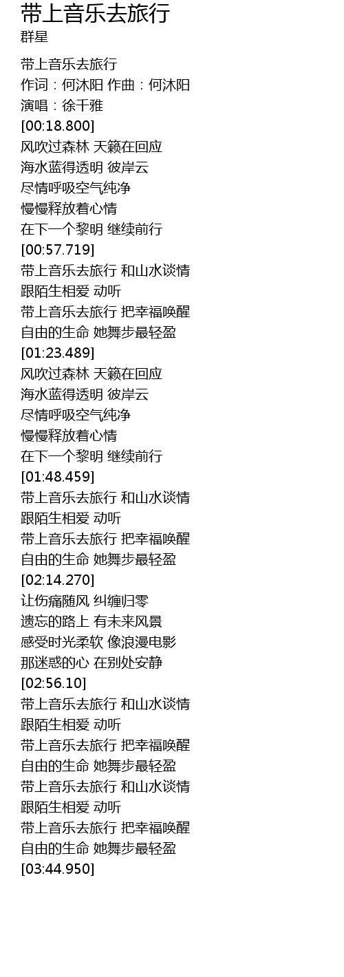| [03:20.710] | 带上音乐去旅行 和山水谈情 |