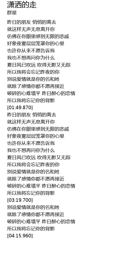 | [01:55.000] | 昨日的朋友 悄悄的离去 |