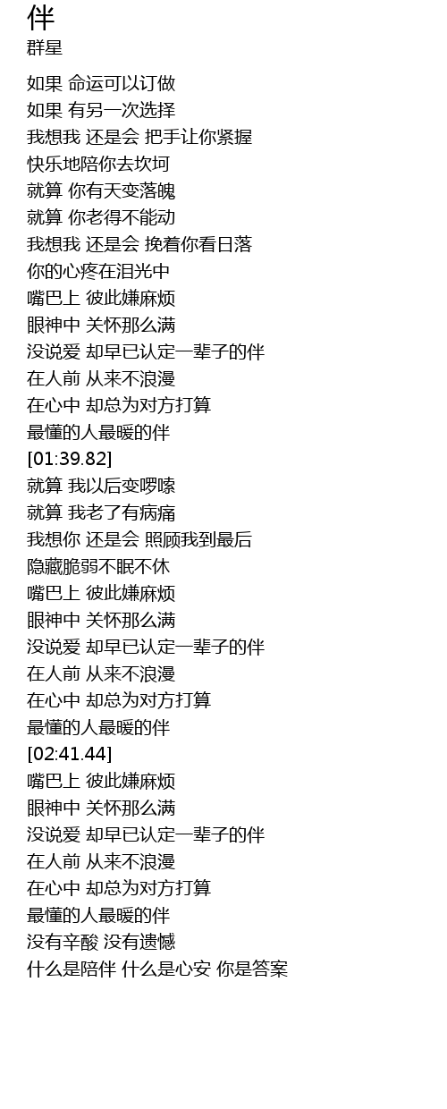| [02:19.51] | 没说爱 却早已认定一辈子的伴 |
