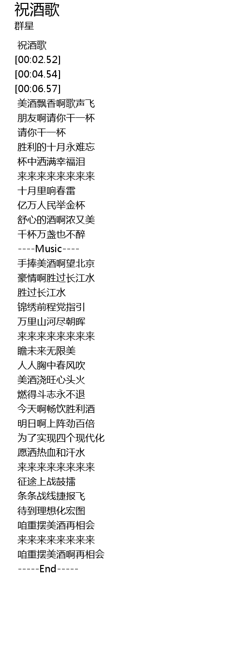 | [01:45.03] | 今天啊畅饮胜利酒 |