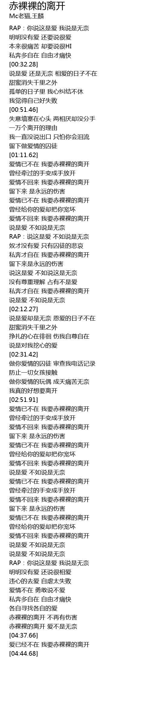 | [03:02.89] | 爱情不回来 我要赤裸裸的离开 |