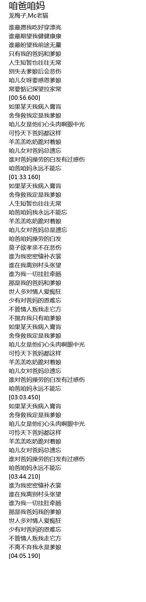 | [01:39.979] | 咱爸咱妈我永远不能忘 |