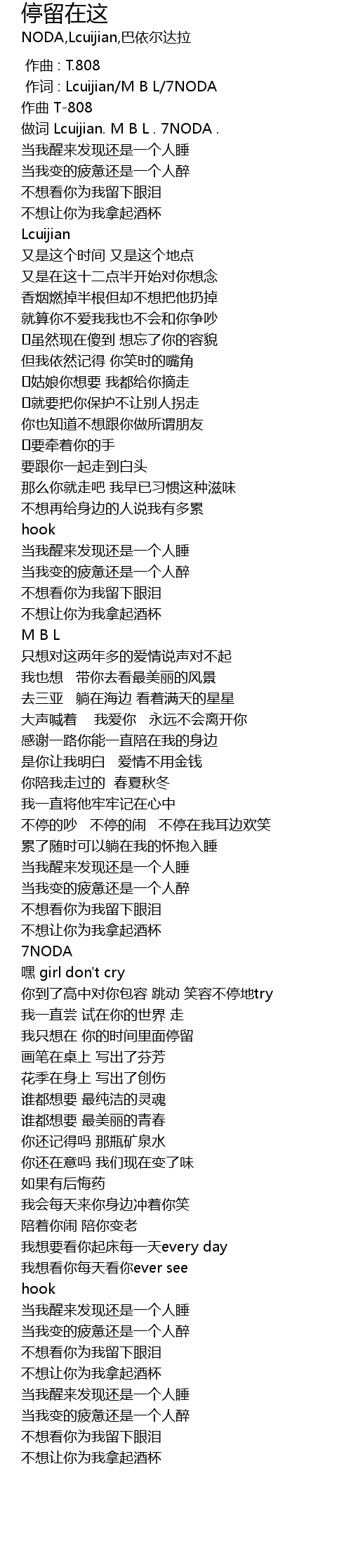 | [00:01.000] | 作词 : Lcuijian/M B L/7NODA |