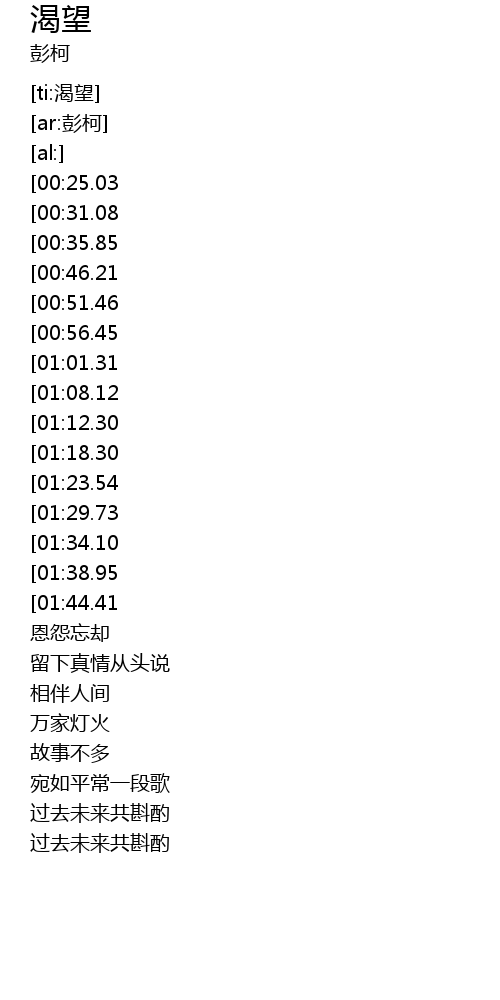 | [03:04.15][01:18.30] | xin zhong ke wang... |