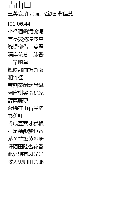 | [03:45.87] | 茅舍竹篱黄泥墙 |