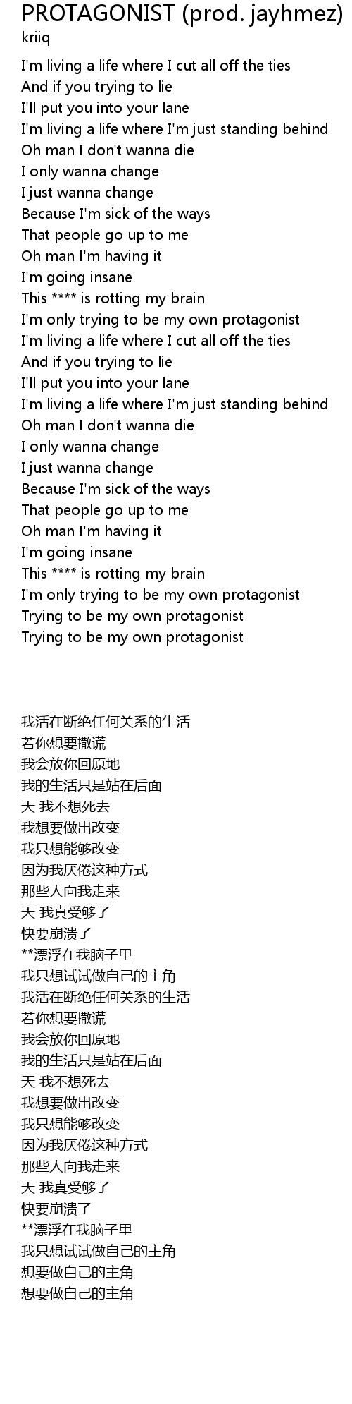 I'm only trying to be my own protagonist |