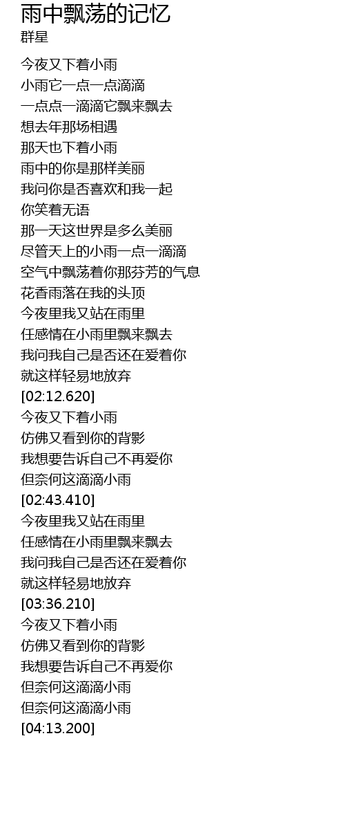 | [00:36.330] | 小雨它一点一点滴滴 |