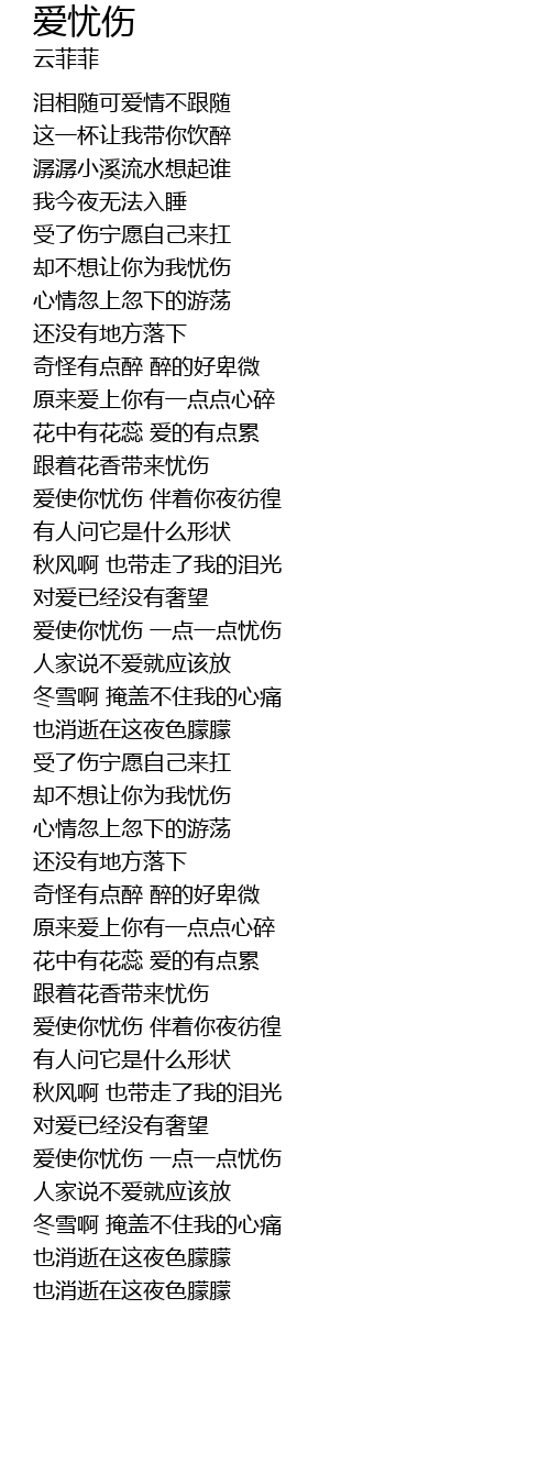 | [04:10.00] | 爱使你忧伤 一点一点忧伤 |