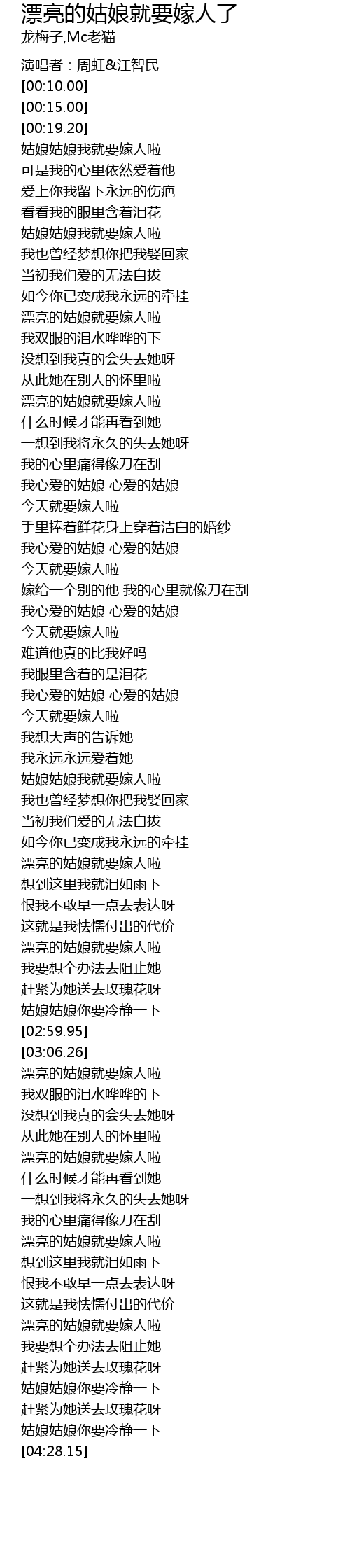 | [04:01.36] | piào liàng de gū niáng jiù yào jià rén la |