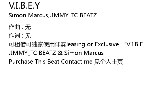 | 可租借可独家使用伴奏leasing or Exclusive “V.I.B.E.Y” Prod by JIMMY_TC BEATZ & Simon Marcus | |