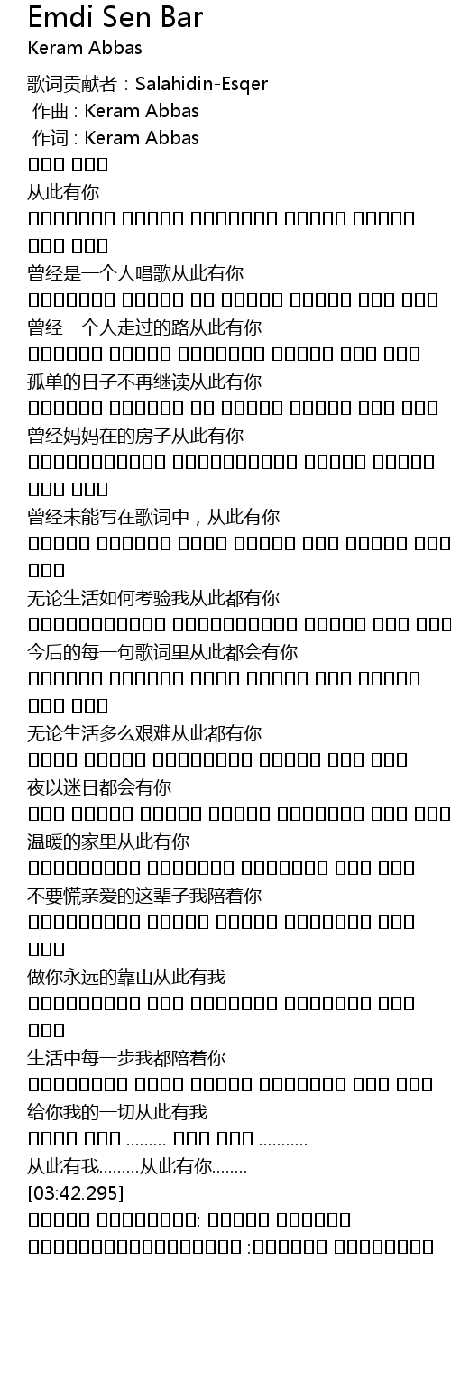 | [00:00.000] | zuò qǔ : Keram Abbas |
