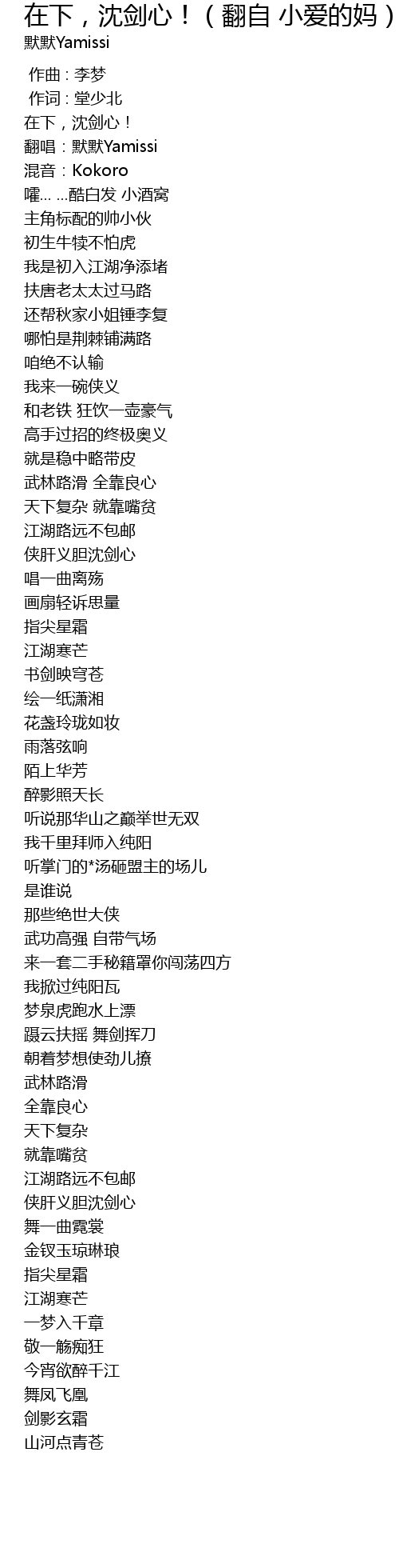 | [00:05.38] | 翻唱:默默Yamissi |