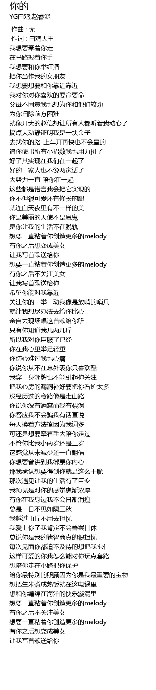 | [00:01.000] | 作词 : 白鸡大王 |