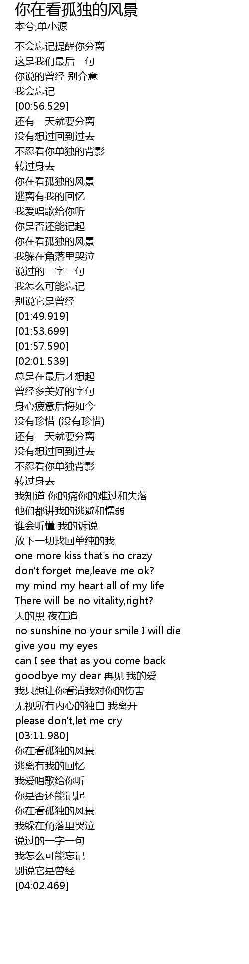 | [03:25.898] | ni zai kan gu du de feng jing |