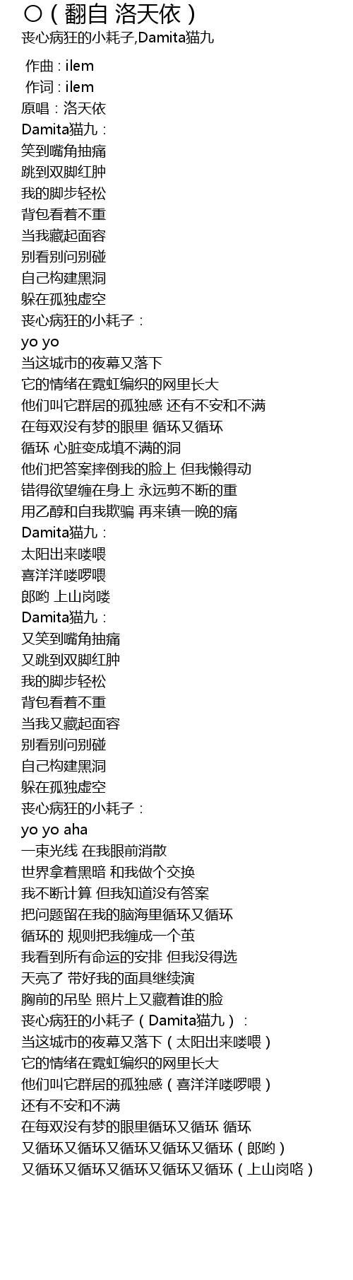 | [02:56.261] | yòu xún huán yòu xún huán yòu xún huán yòu xún huán yòu xún huán láng yō |