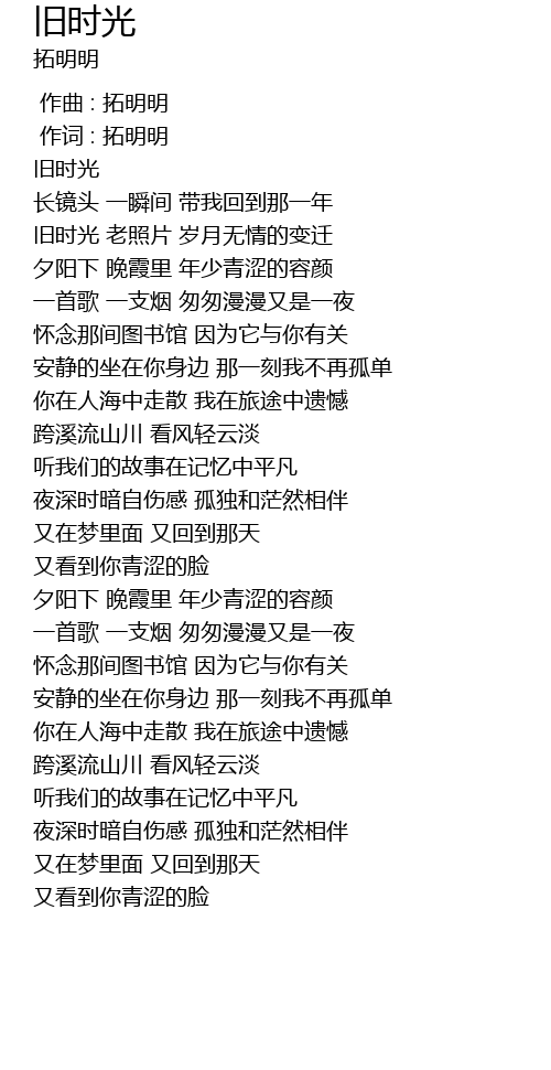 | [00:01.000] | 作词 : 拓明明 |