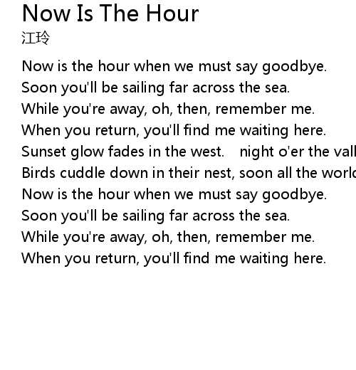 | Song | Now Is The Hour |