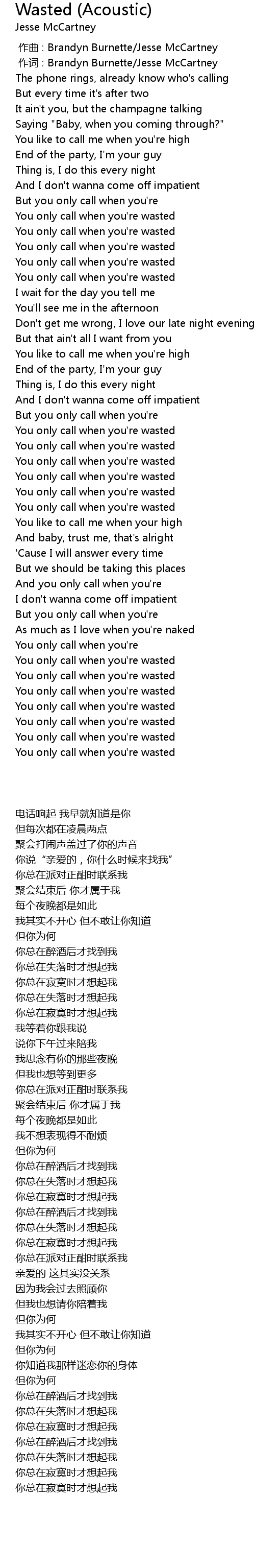 | [00:49.34] | You only call when you're wasted |