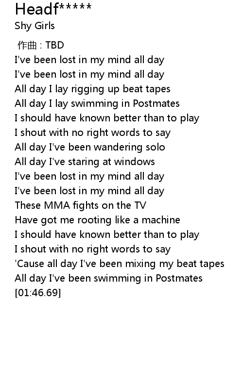| [00:14.32] | I've been lost in my mind all day |