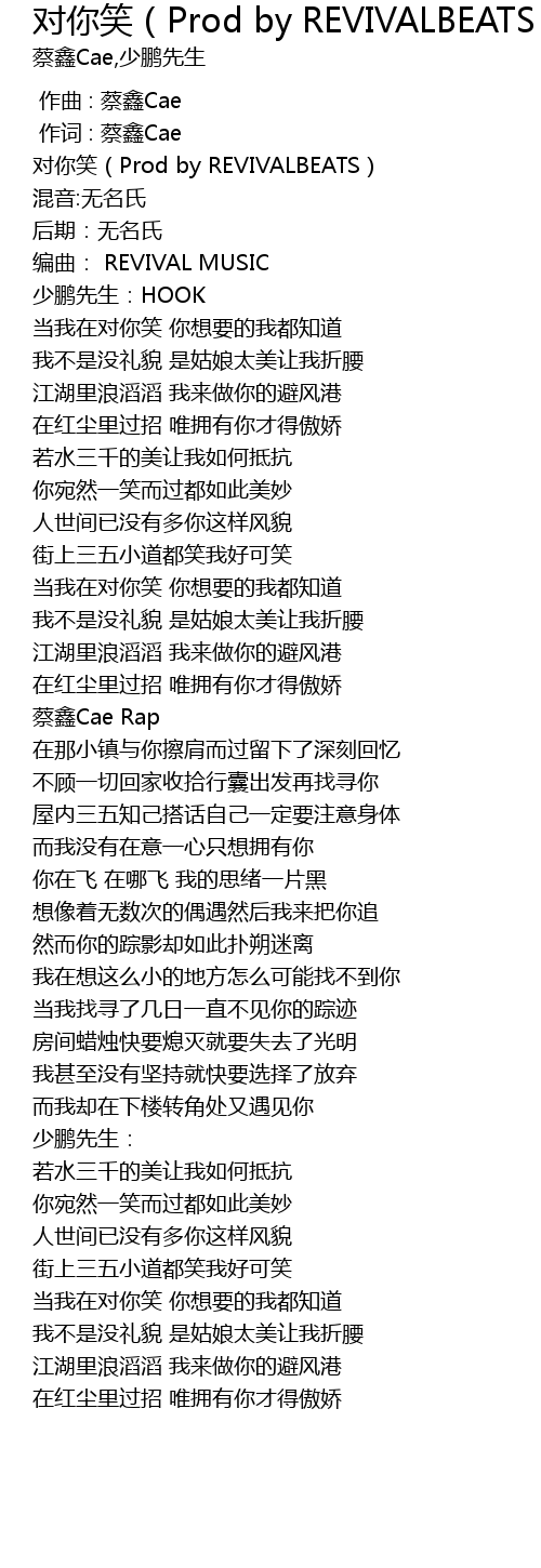 | [00:04.996] | 对你笑(Prod by REVIVALBEATS) |
