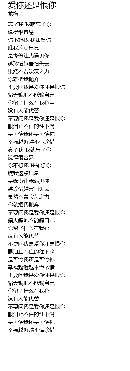 | [02:45.160] | 不要问我是爱你还是恨你 |