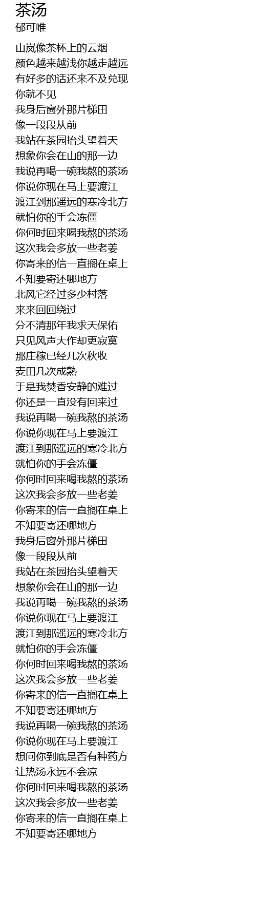 [01:01.89] 我说再喝一碗我熬的茶汤