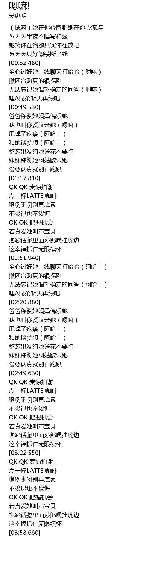 | [00:34.340] | 全心讨好她上线聊天打哈哈(嗯嘛) |