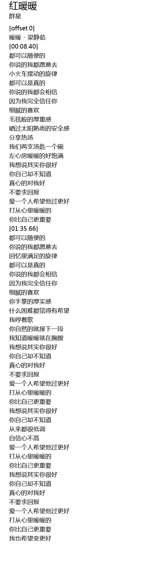 | [00:02.55] | 暖暖 - 梁静茹 |