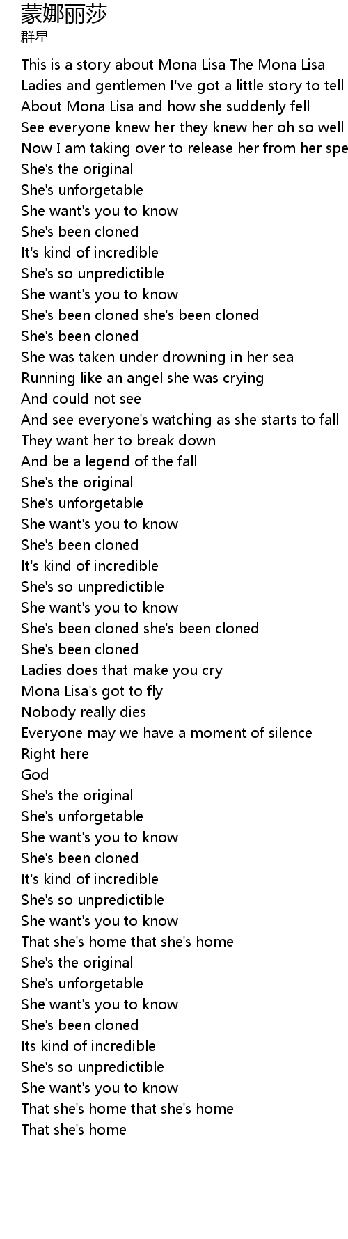 蒙娜丽莎 meng na li sha Lyrics