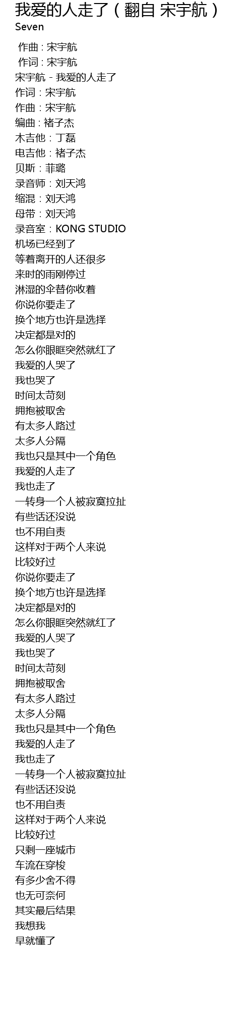 | [00:02.92] | 宋宇航 - 我爱的人走了 |