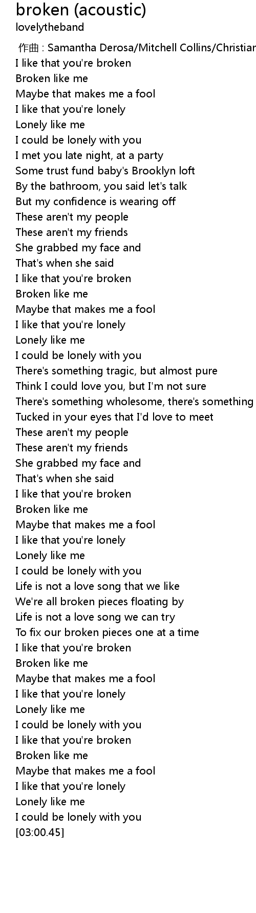 | [00:45.29] | I like that you're broken |