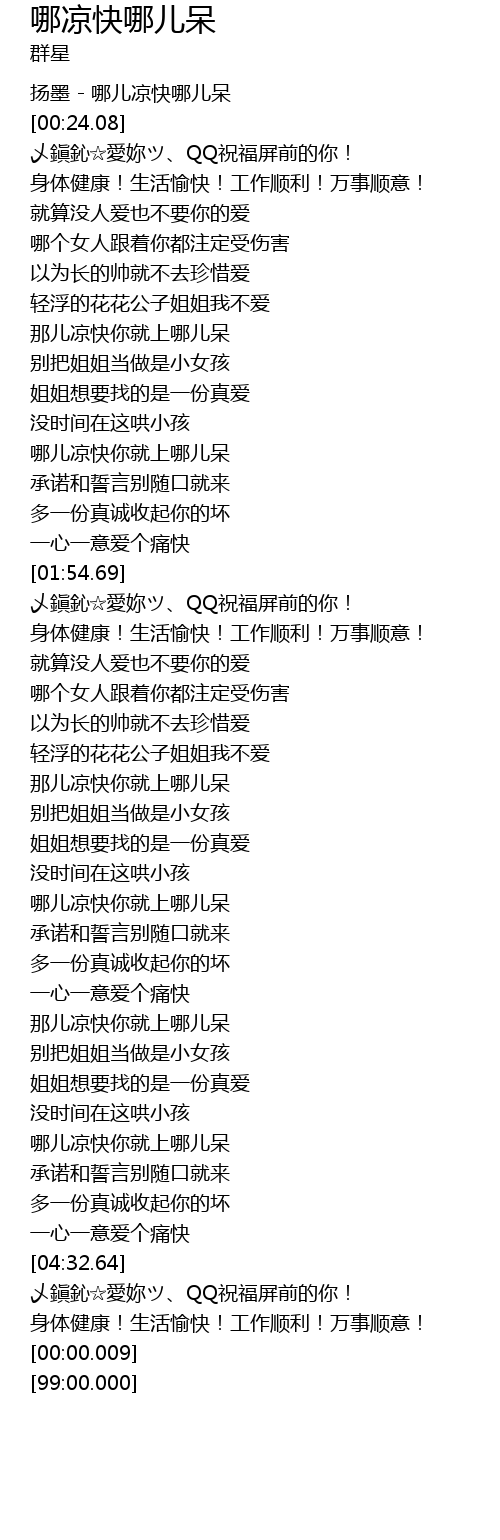 | [00:02.39] | 扬墨 - 哪儿凉快哪儿呆 |
